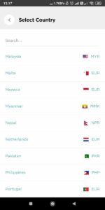 Kemudian, pilih mata uang yang menjadi tujuan pengiriman uang. Anda bisa memasukkan nama negara yang ingin Anda tuju. Saya mencoba mengirim uang ke rekening EUR saya di Belanda sebagai percobaan. Karena saya dapat kode referral, saya mendapatkan gratis biaya pengiriman. Ingat : kode referral ADLIENERZย .Transfez hanya mengambil Transaction Fee sebesar Rp.74.000 sebanyak apapun uang IDR yang Anda kirimkan. Jadi tidak ada biaya tambahan jika ingin mengirimkan uang dalam jumlah besar. Aplikasi ini bisa mengirim uang hingga 15.000 EUR atau setara dengan dua ratus juta rupiah dalam satu kali pengiriman.
