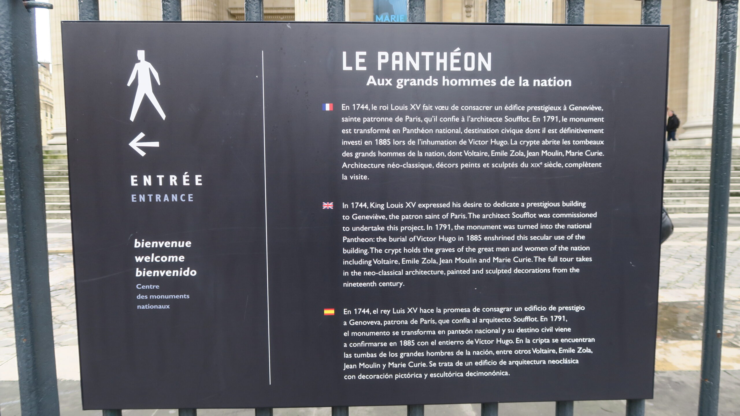 Saya berkesempatan mengunjungi makam para pesohor Perancis di zamannya. Bangunan yang awalnya dibangun sebagai gereja kemudian berganti sebagai makam atau biasa disebut Mausoleum. Disinilah banyak jasad para ahli dimakamkan.